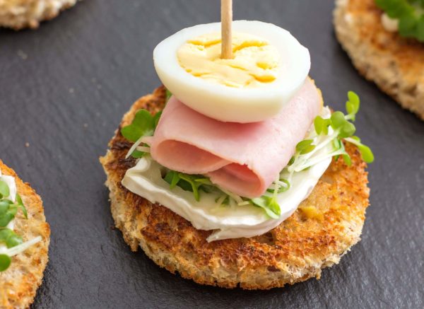 Ajouter un confit d’oignons ou une confiture sur la base du toast pour une noté sucrée !